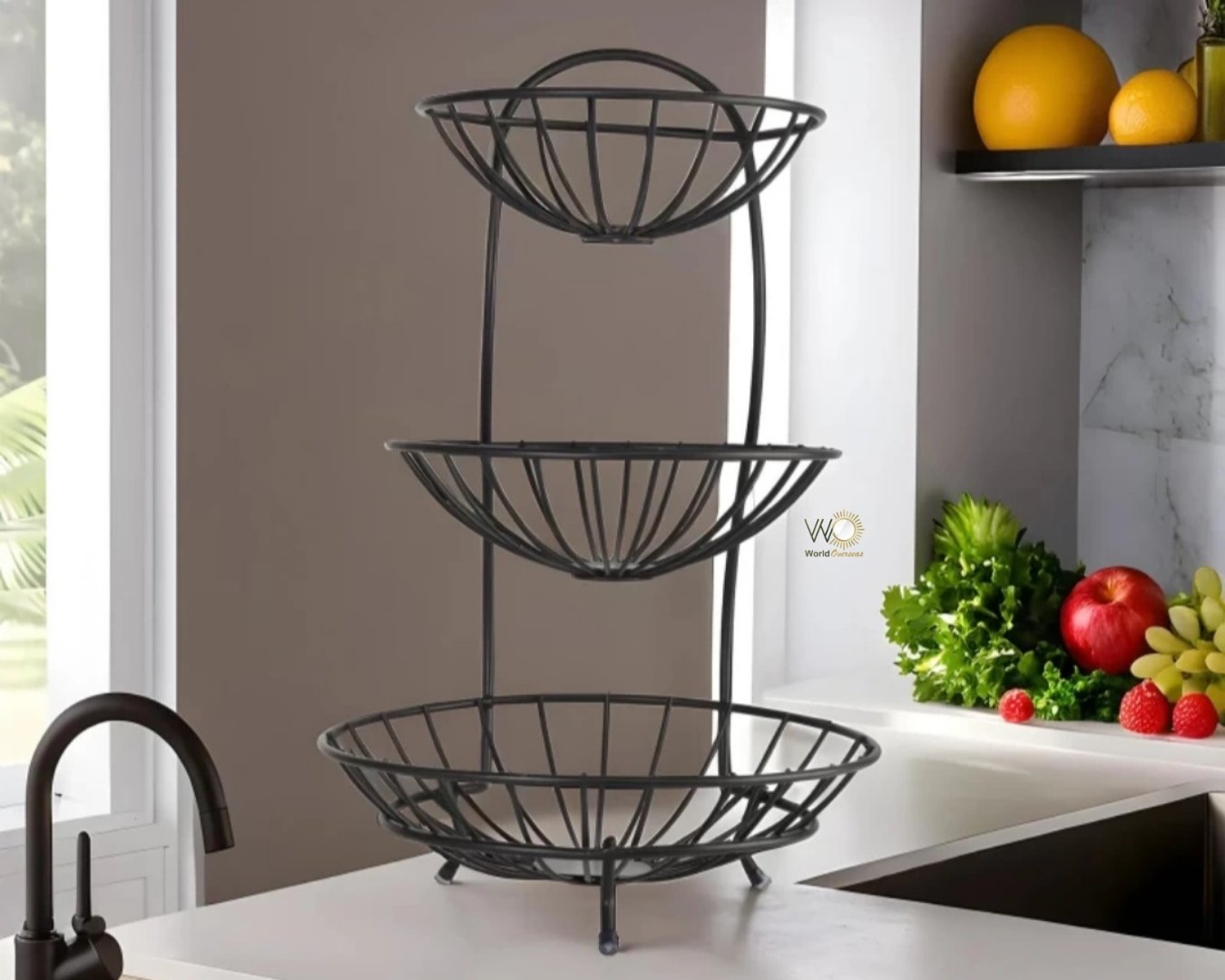 “Stylish 3-Layer Storage Basket with Circular Side Stand – Perfect for fruits, vegetables, and essentials. Space-saving design with durable construction and easy accessibility for organized living.”