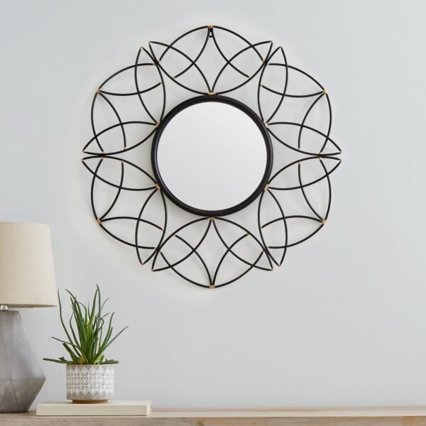 Modern Metal Floral Pattern Round Hanging Wall Mirror,