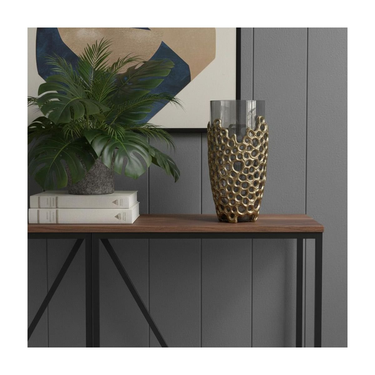 Luxury Golden Metal Cutwork Flower Vase with Glass Insert | Modern Home Decor Vase for Living Room & Table Decor
