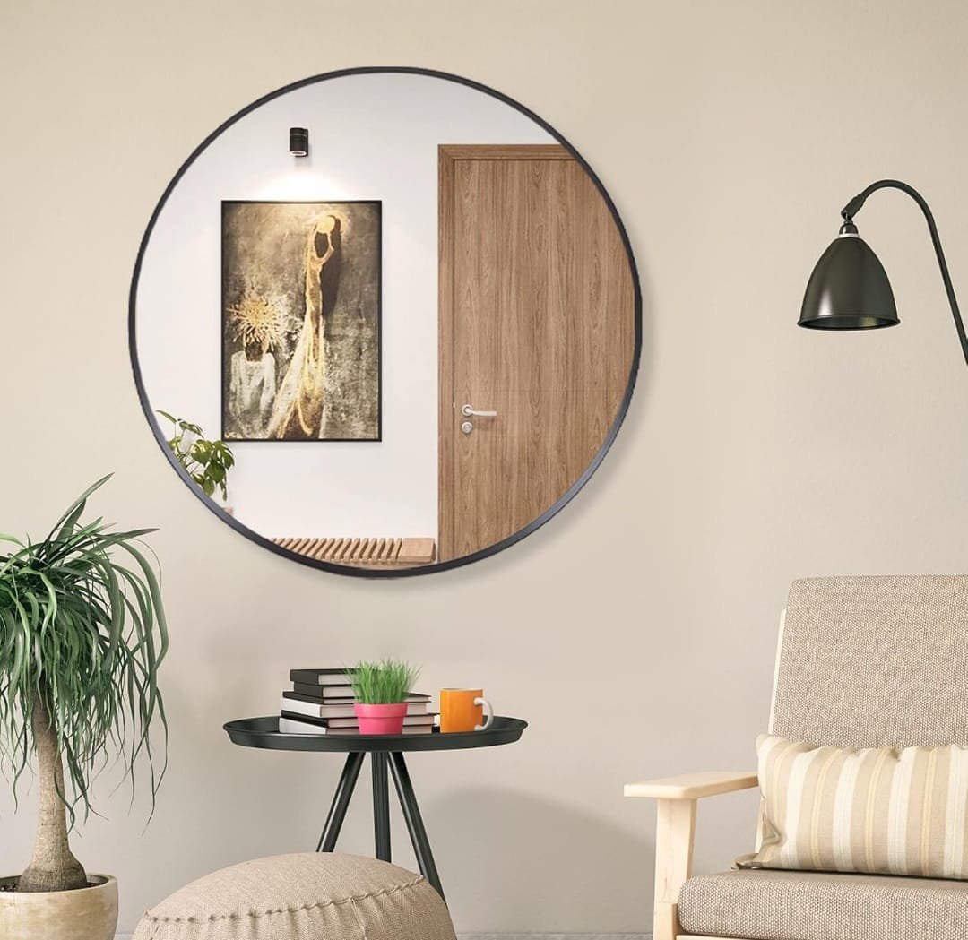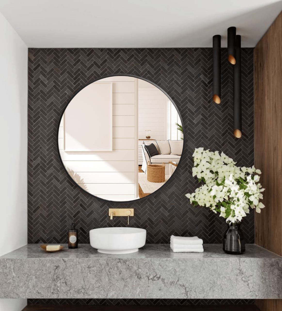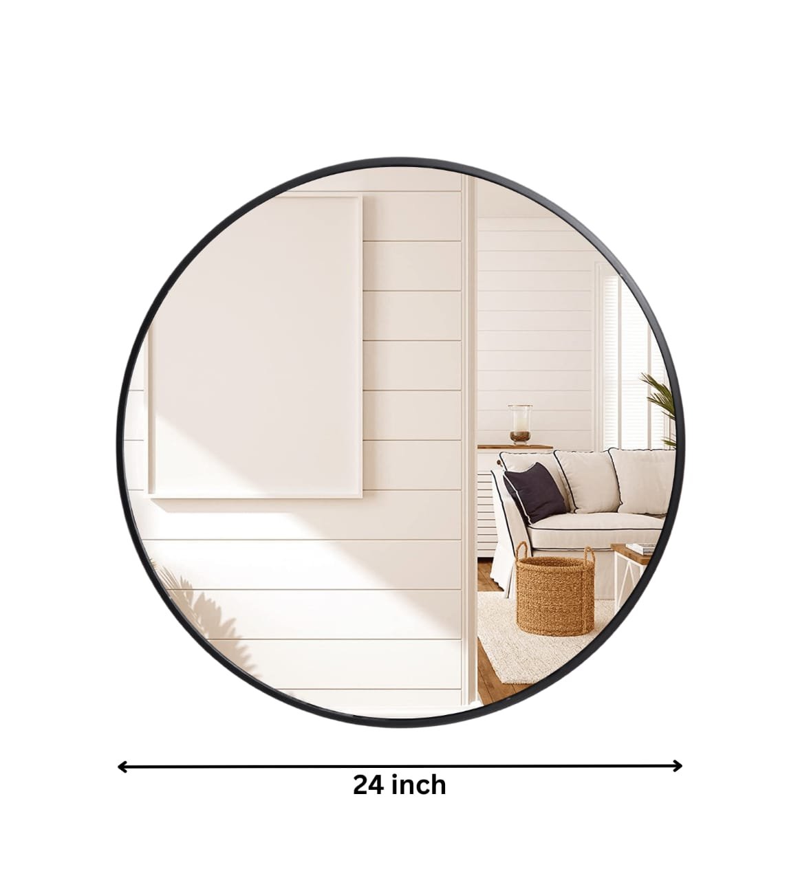 • Finish: Black  finish with detailed  Round  Bathroom Wall Mirror