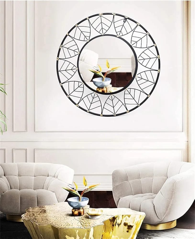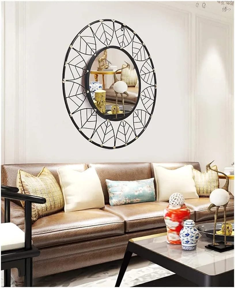 Round Decorative Mirror, Wrought Iron Nordic Style Wall-mounted Mirror Bathroom Beauty Mirror