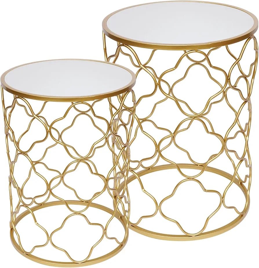The Decor India Luxurious Round Coffee/End Tables – Set of 2 for Living Room Decor