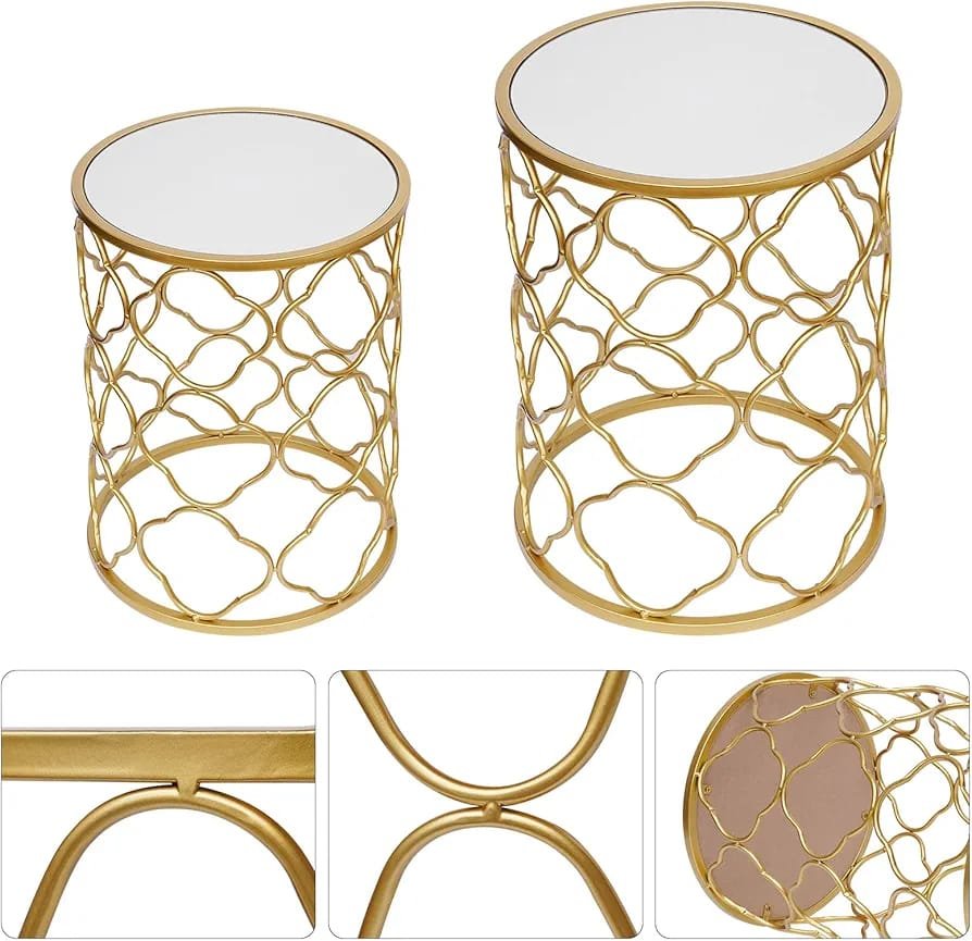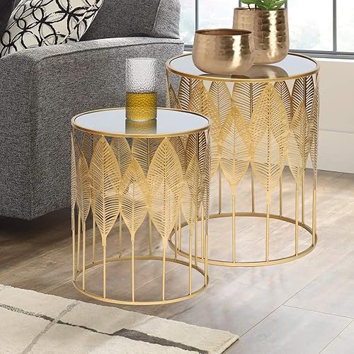 The Decor India Luxury Metal Nesting Side Tables with Mirrored Top – Set of 2 Gold Leaf Design Coffee/End Tables for Living Room Decor Original price was: ₹5,000.00.Current price is: ₹2,750.00.